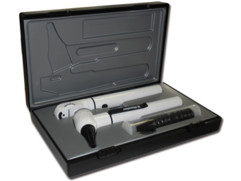 Set oto-oftalmoscopio, LED 3,7V, colore bianco, in valigetta rigida.