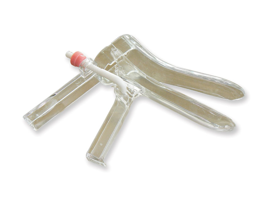 Speculum vaginali monouso con regolazione graduale a vite, prodotti in materiale plastico atossico trasparente, confezionati singolarmente in materiale trasparente.